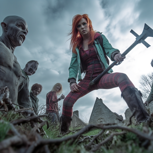 scary mechanical zombies rusted bodies orange eyes, fighting zombies blueish rotting skin yellow eyes in an old graveyard orange red moon surreal --style raw --v 6.1 --s 250