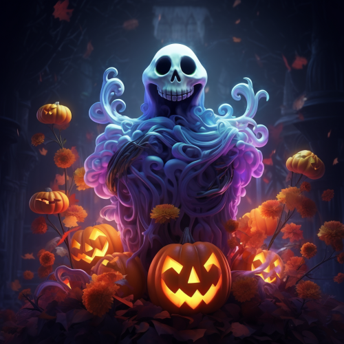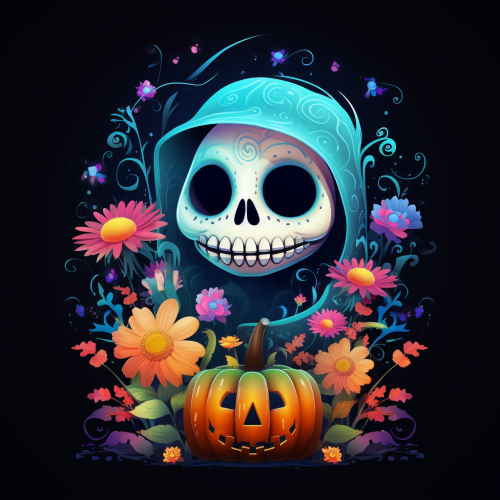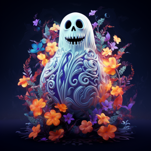 ghost Halloween with minimalist pink, orange, cream, pastel flowers on her face, watercolor no background stylize very high 4k 3D gartoon