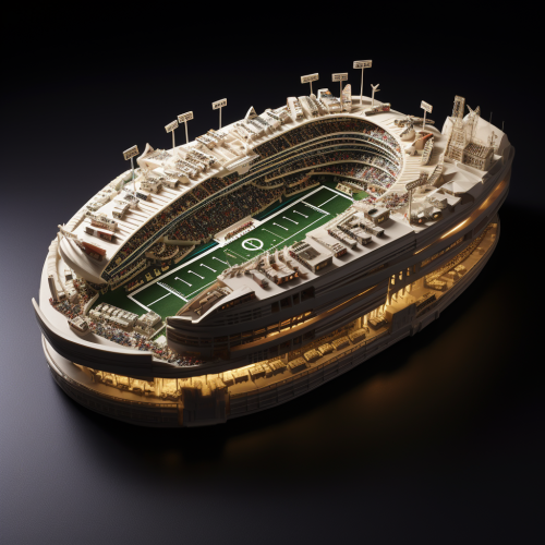 an american football stadium with red seats, photorealistic, --ar 16:9