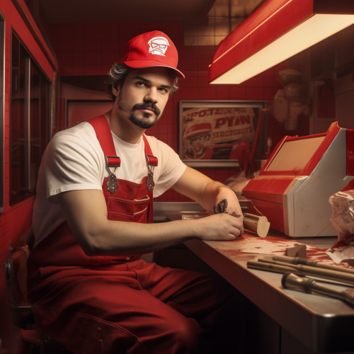 Freddy Mercury walking through a Guitar Center showroom, hyperrealistic, --aspect 16:9