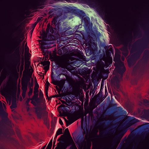 [Freddy Kruger]::4 he is in a red place with an aura of purple. [black snake]::2 beneathe him. [cinematic purple lighting]::4 horror scene. [1980's movie poster style]::2 --s 750 --v 5.0