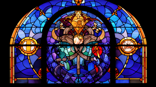 Kingdom Hearts, style stain glass window pattern --ar 16:9