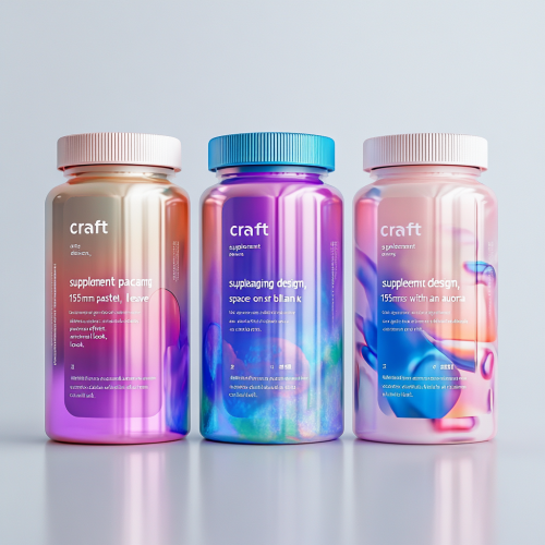 "Craft a supplement packaging design, size 100mm x 155mm, leave 5mm of blank space on sides, use vibrant pastel colors with an aurora effect, highlight a refined and colorful look."--v 6.0