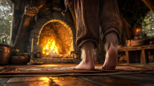 Head to toe view of a rabbit-headed humanoid D&D fighter character. Light brown fur with dark spots. Dressed in medieval leather clothing. Smoking a pipe as he sits at a desk, reviewing paperwork. --ar 9:16 --personalize uhmf8mu --stylize 1000 --v 6.1