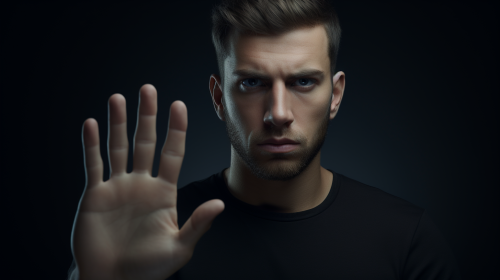 Man teaching himself with fingers, smiling, simple --niji 6 --ar 9:16
