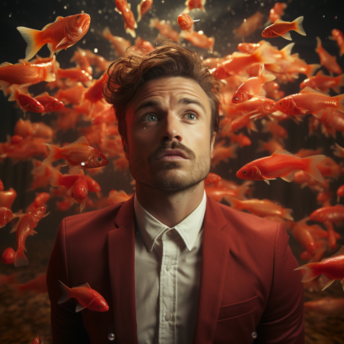 grim depressed distraught crying fish man desperate burying bones in the mud