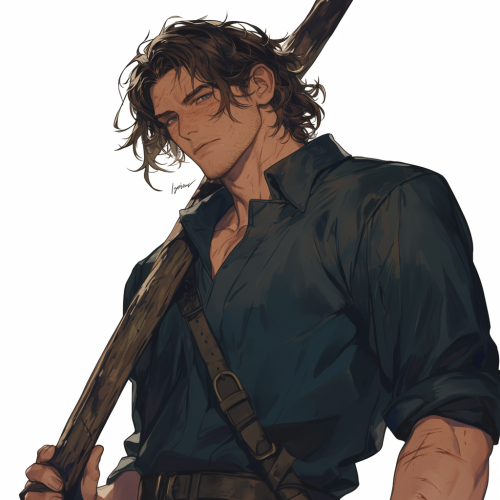 llustration in the style of Japanese manga and anime, male in his 20s, thin, western with brown hair, 170 cm tall, dressed in medieval European work clothes. Occupation: lumberjack. --niji 6 --s 750