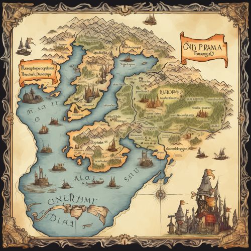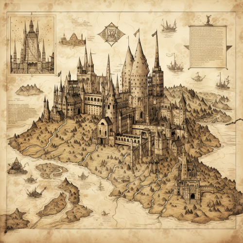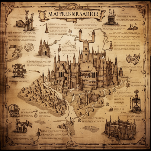 A historical map of an ancient city, with detailed street layouts, city walls, and landmarks. The map is drawn on parchment, with aged and weathered edges, featuring classical cartographic symbols. Sepia tones, warm lighting, subtle shadows. Created Using: hand-drawn illustration, classical cartography style, quill and ink, aged parchment texture, historical accuracy, intricate linework, antique borders, detailed legends, hd quality, natural look --ar 4:5 --v 6.0