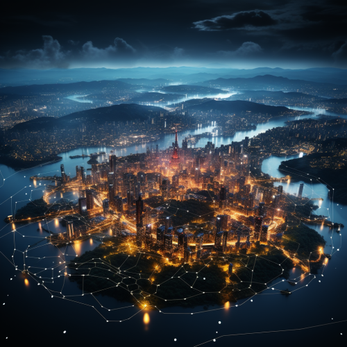 dreamlike image of earth from orbit, monotone, aqua, major cities connected by dots and points. --s 750