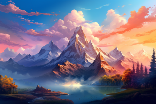beautiful majestic mountains peak , clear sky, , split lighting, wide light, painted, 16k, hyper quality , very clear lines, very detailed, romantic style, vibrant colors , , disney, 3d --ar 15:10