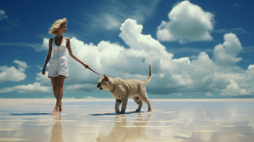 A beautiful young woman in her 20s, fully immersed in the peaceful moment, is walking up from the ocean onto a sandy beach. She’s surrounded by soft, gentle waves, with water droplets glistening on her skin in the warm, golden sunlight. Her expression is serene, capturing the tranquility of the beach setting. The background features a wide, open shoreline with soft sand and rolling waves, and the lighting is warm, either early morning or late afternoon, enhancing the soft and cinematic atmosphere of the scene. The overall composition is natural, focusing on the harmony between the woman and her serene surroundings. –v 5 –ar 4:5 –style photorealistic –mood peaceful and cinematic –lighting soft and warm