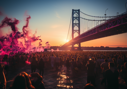 Establishing shot of Loveparade 2025, in the style of Janusz Kamiński and James Cameron, god-rays, bright and sunny, beautiful nature, beautiful Vista, Brandenburger Tor, shot on 70 mm, 250 mm lens, long exposure, hyper realistic photography, matte, film grain, noise, rich colors, high contrast, long exposure, outdoor professional photography, detailed, elegant, depth of field, 24K, rendered, natural lighting, 2024 trending colors, modern colors, trendy colors, stylish colors, pantone trending colors 2024, vibrant colors, epic cinematic lighting, no blur, brightly lit, bright even lighting, bright lighting, pastel, hyper maximalist, vibrant colors, hd extremely detailed digital art, key visual, cover artwork, ultra-detailed, 32k, ultra wide angle, epic scene, epic perspective, epic composition, wide shot, cover artwork, epic cinematic lighting, very high detail, hdr, cinematic lighting, 8k, insanely detailed and intricate, elegant, ornate, hyper realistic, super detailed, intricate detail, HDR, extremely detailed, perfectionism, octane render, immersive, octane render, unreal engine 5, photoshopped, post-production, epic scene, Epic composition, epic perspective, epic cinematic lighting, photoshopped, super resolution, 12k, ultra hd, post-production, maximum detail, best image quality, --v 5.2 --chaos 10 --ar 21:30 --s 700