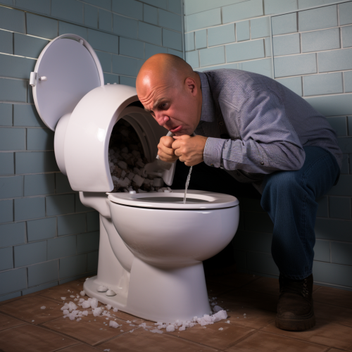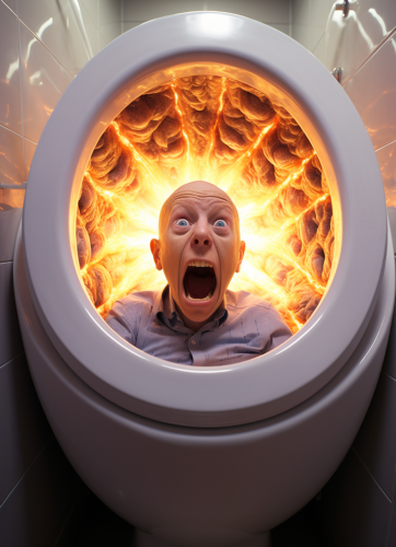 the head of a man sitting inside of a toilet bowl, in the style of voidcore, animated exuberance, pseudo-realistic, found footage, salvagepunk, beige, i can't believe how beautiful this is --ar 19:26