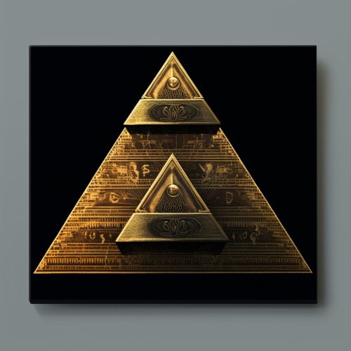 a flying pyramid the painting should look like "Triptych of Earthly Vanity and Divine Salvation" by "Hans Memling"
