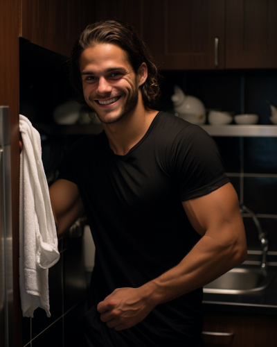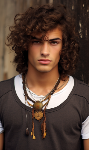 Photo of beautiful 21yo male model (Ancestry= 50% Nicaraguan, 50% Turkish) in crop top --v 5.2 --ar 3:5