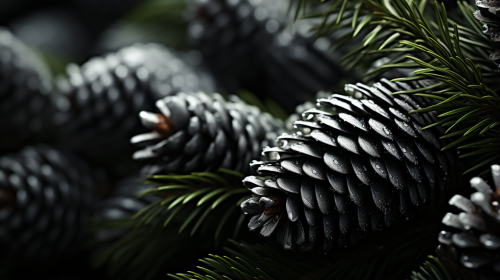 Christmas Tree. Fraser fir. Abstract art. Split depth photography. Black and white photograph. Stylish. High-end. Important. Mysterious. Shot with a Pentax. K-3 III Monochrome. Extreme low angle shot. Shooting straight up. --ar 16:9 --q 0.5 --s 750