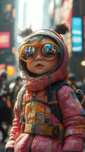 a beautiful little girl very fashion kawaii chibi Anna Dittmann style pastel blue suit overalls jacket shoes all in color silver beautiful big face and beautiful eyes sweet and smiling features posing and fashion show style thomas kinkade Nadja Baxter Anne Stokes nancy noel --ar 4:5 --niji 5