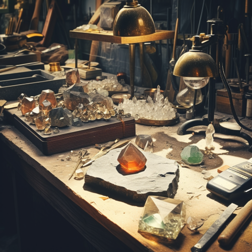 Kaleidoscopic gemstone pattern with facets and vibrant hues, capturing the brilliance and complexity of precious gemstones.