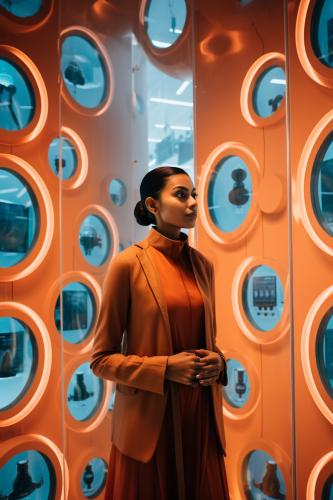 Realistic photo of a wealthy 30-year-old Japanese woman, wearing a stylish and expensive dress, placing a coin into a piggy bank, set indoors with a lavish, high-end atmosphere, her expression is both focused and relaxed. Photorealistic, realistic image, 8K resolution --ar 3:2 --v 6.1 --style raw