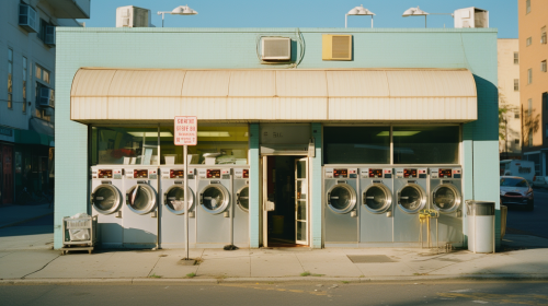 a man in all black asking a new york white women in a dress, close up shot chest up of the men, behind is a simple green restaurant with minimalstic vibes in New York, during the middle of the day --ar 16:9