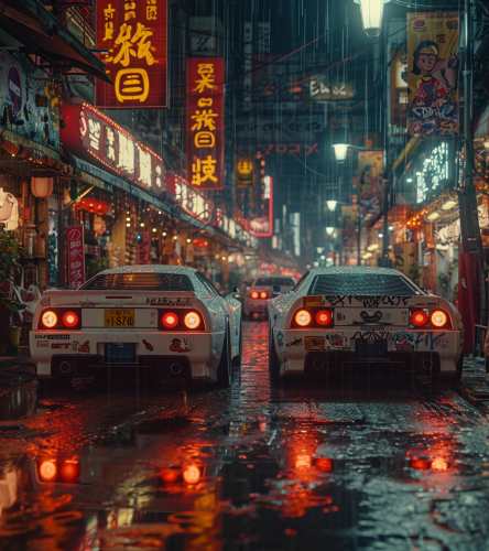 an ex car and a white car with graffiti on it, in the style of anime aesthetic, luxurious wall hangings, voigtlander bessa r2m, grid work, giant money sculptures, rtx on, minimalist stage designs --ar 70:79 --stylize 750 --v 6.0