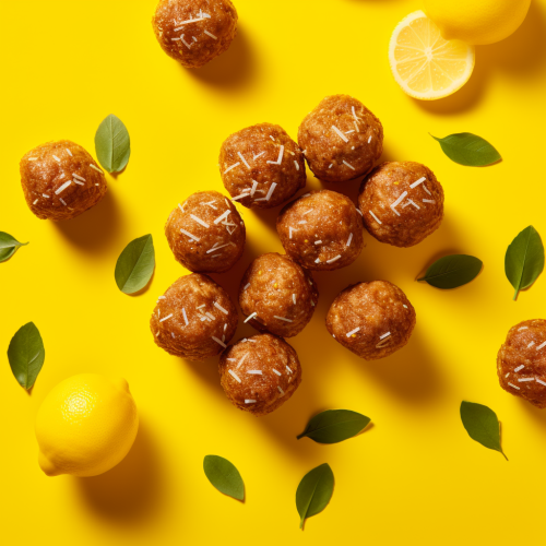 a square image featuring hyper-realistic and tactile representation of authentic Milanese mondeghili meatballs. Showcase the intricate textures and colors of the meatballs, highlighting the blend of ingredients that make them unique. Position the meatballs on a vibrant yellow background that enhances their appearance and creates a pleasing contrast. Incorporate pop-art elements to infuse the food with a tactile quality and bold, vivid tones, bringing the traditional dish to life