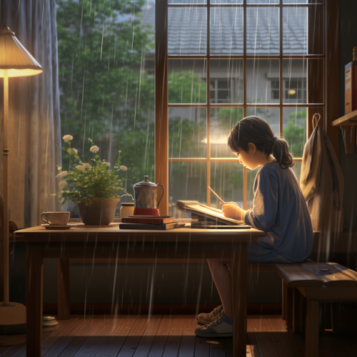 Warm indoor scenes, fantasy scenes. Ghibli style, a cozy room filled with glowing lanterns, vibrant plants climbing the wooden beams, colorful tapestries adorning the walls, a gentle breeze moving the sheer curtains, a woven rug cradling a massive pile of soft cushions, dappled sunlight streaming through a window, creating playful patterns on the floor, whimsical artistic chaos harmonizing with order, inviting and enchanting atmosphere, filled with a sense of wonder and tranquility, illustration, capturing the dreamlike quality of a Ghibli film. --ar 16:9 --niji 6