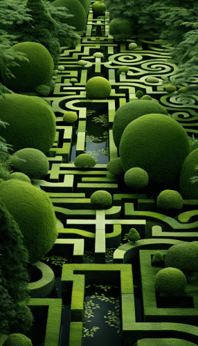 Develop a straight walkway for a stage with wavy garden pattern along the pathway with plants placed on it. With few illuminations of light along the walkway