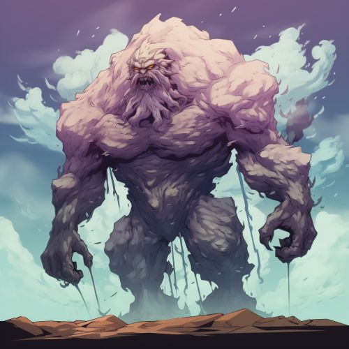 Super-massive cloud monster with abnormal body proportions, humanoid character design, standing pose, side pose, Studio Ghibli style, comic book drawing style --v 5.2 --no BackGround --style raw