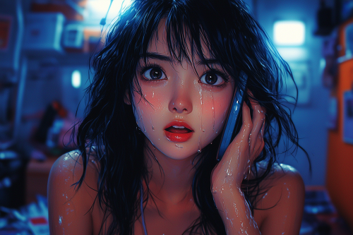 anime, hand-drawn and cell animation techniques, a wide shot of an asian girl who is crying while calling someone on the phone, the background is her dorm room, natural design, beautifully rendered and expressive rich colors, vibrant pastel colors, sharp attention to detail, realism and a strong sense of nostalgia and warmth, sharp attention to small details and textures, fantastical creatures, settings, depth and emotions emphasized and accentuated by lighting and shading, extremely high quality, incredibly high finite definition, high resolution, hand-drawn and cel animation techniques, anime --ar 3:2 --stylize 1000 --q 2