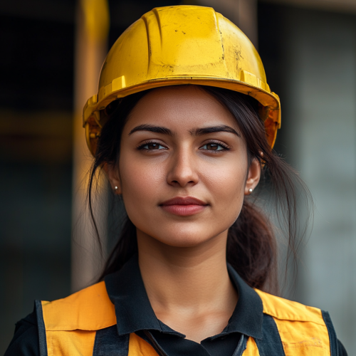 Young polish woman in her 20s in construction , she is an executive ,, realistic photo A creative high definition photography photo shoot for modern stunning young ladies, different races, 1 Indian, 1 Asian, 1 Pakistani, 1 white, and 1 Black African. All beautiful women, facing forward, hair neatly packed into one and away from their faces and working in construction and wearing a yellow ochre and black construction uniform and a yellow ochre construction hard hat, very realistic immersive environment. Creating visual depth with a focus on Photorealistic, cinematic lighting, natural light and hyper photo, extreme realistic. Half body portrait with a confident smile. very well dressed.