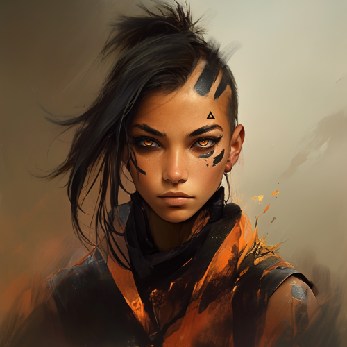 Avatar: The Last Airbender character dark gothic girl cyberpunk with half of face burned, full body, photorealistic oil painting, 8k resolution --niji 6 --p 4odw11f