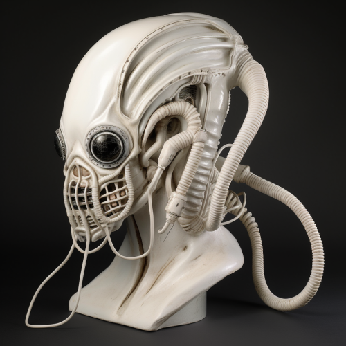 h.r. giger version of the oculus white in color headset for a movie directed by ridley scott found in an underground bunker where they do experiments on aliens in 1979 --v 5.0