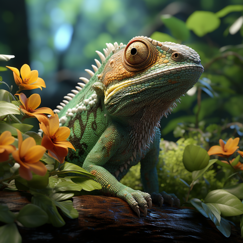 Geometric Chameleon Head with Giant Eyes