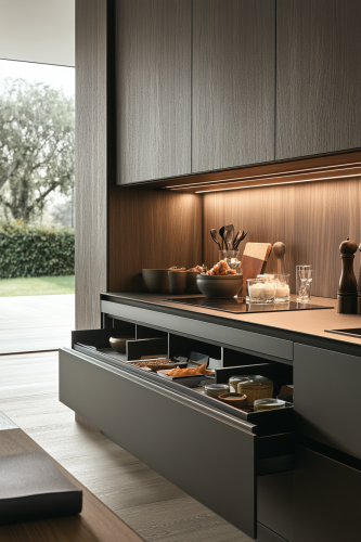 Capture a contemporary living room featuring a mantle with hidden storage solutions, such as sliding panels or secret compartments. This design should be sleek and unassuming, with the storage elements integrated seamlessly into the mantle itself. The room should be clutter-free and modern, emphasizing the functionality and clever use of space. Ensure the photograph is clear and detailed, highlighting how contemporary mantles can combine aesthetic appeal with practicality. Camera: DSLR - Canon EOS 5D Mark IV. Lens: Canon EF 24-70mm f/2.8L II USM. Composition: Wide shot, room-centered, horizontal orientation, balance between furniture and space. Film: Digital, high resolution, color profile sRGB. Camera settings: ISO 400, f/2.8, 1/60 sec. --ar 2:3 --v 6.1 --s 250