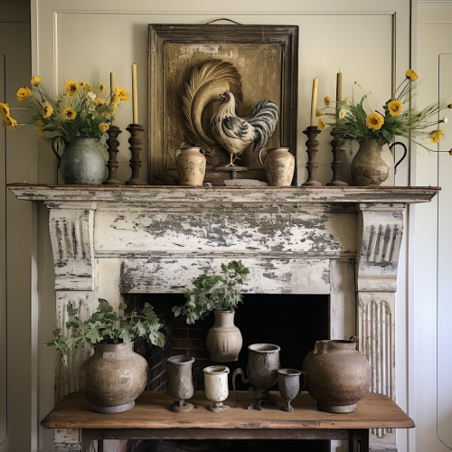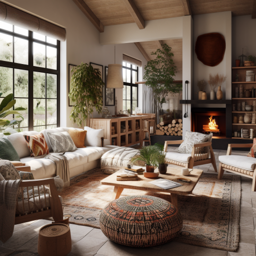 Symmetrical living room with modern Spanish farmhouse theme
