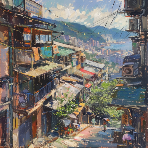 an oil painting of jiufen Taiwan by munnings, visible paint strokes --v 6.0