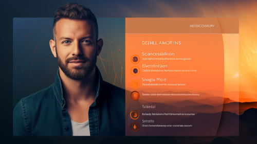Beautiful presentation of me in card 16/9 format for a hypnotherapist website, only 1 photo and 1 text::2, nature::0.3, light orange and blue decoration in the presentation, white background, design, ux/ui, ux, ui, 4k, ultra detailed, web view --ar 16:9 --no futur, space, robot