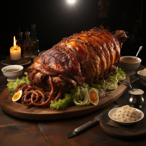 a large piece of bacon stuffed with a whole chicken with its feet squishing --s 750