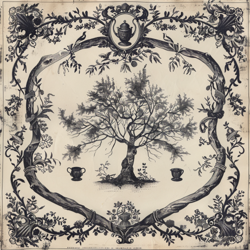 a logo for a company that sells adaptogen tea. a purple mushroom growing from a teapot psychadelic vibes, 1800's myseterious. black background --v 5.0