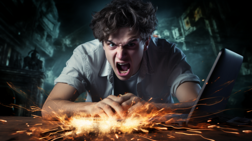teenager playing pc games in his room on pc in the night, dark blue tones and cozy warm orange lights sources in backgroudn such as lamps, background should be blurry, shoot from hald profile angle, realistic photography, portrait photography, blue light from monitor illuminates his face, there should be retro 3d rendered game icons flying around him, commercial photoshoot, --ar 16:9
