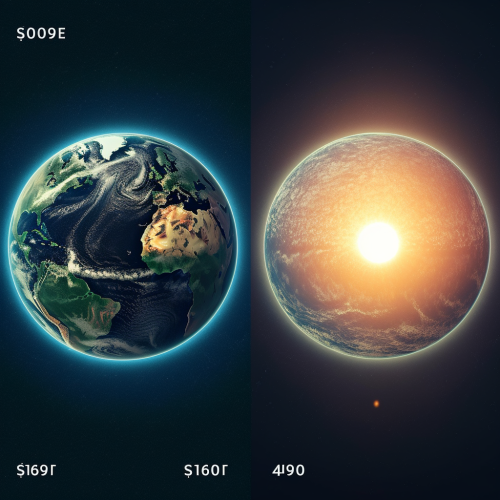 Creates a 9:16 image in a drawn style. The EARTH should occupy all the space on the left screen, giving the impression that it's huge. Place the sun in the top right-hand corner, with its bright luminosity. On the right-hand side, represent space. SPACE ON THE RIGHT SIDE. Make sure the sun is positioned at the top right of the screen. --v 5.0 --s 750