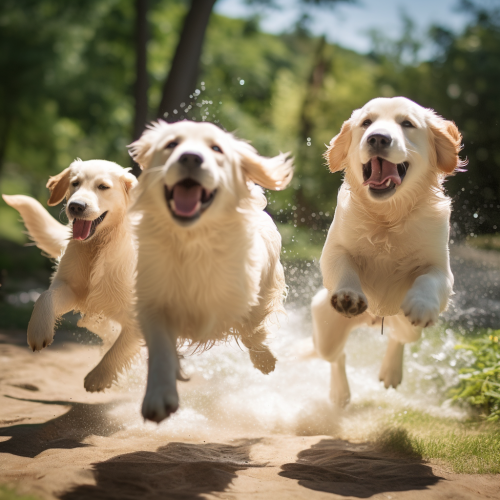 English Creme Golden Retrievers playing, training, and interacting with families.
