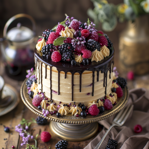 An early morning breakfast scene set in a cozy cottage kitchen, where golden, fluffy pancakes are stacked high on a wooden table. The pancakes are topped with fresh berries, dripping maple syrup, and a side of whipped butter. Sunlight streams through the window, creating a warm and inviting atmosphere. The smell of freshly brewed coffee fills the room, and the steam rises gently from a nearby mug. The kitchen has rustic elements, with wooden cabinets, soft linen towels, and potted herbs on the windowsill, giving it a comforting, homey feel