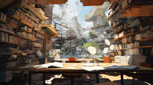 A concept sketch of the view inside a book tornado on a sunny day in the style of studio ghibli and cyberpunk --ar 16:9 --v 5.2