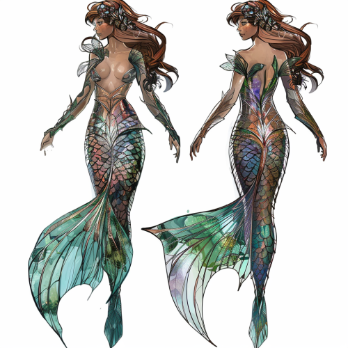 A beautiful mermaid ,character sheet, white background --v 6.0