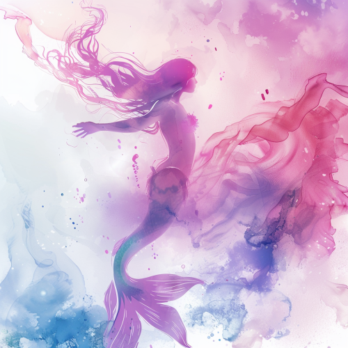 cute little mermaid cartoony in the style of soft watercolors, swimming, dynamic pose, in the colors of soft pink and purple pastel colors, white background, high resolution, 8k, --ar 1:1 --v 6.0
