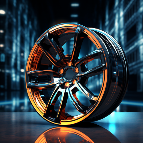 image of a futuristic modern car wheel rim, realistic photo, cold dark light in zenithal plane::2, hassebland kodak portra 400 camera, 8k --ar 1:1