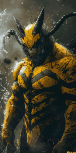 half man half bee, yellow and black fur stripes, cthulhu, no tentacles, humanoid face, very muscular, aggressive, dangerous, direct stare, dark eyes, threatening, humanoid, attractive, eerie --ar 1:2