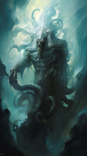 calamari god of the void, fantasy, Franz frazetta style --ar 9:16